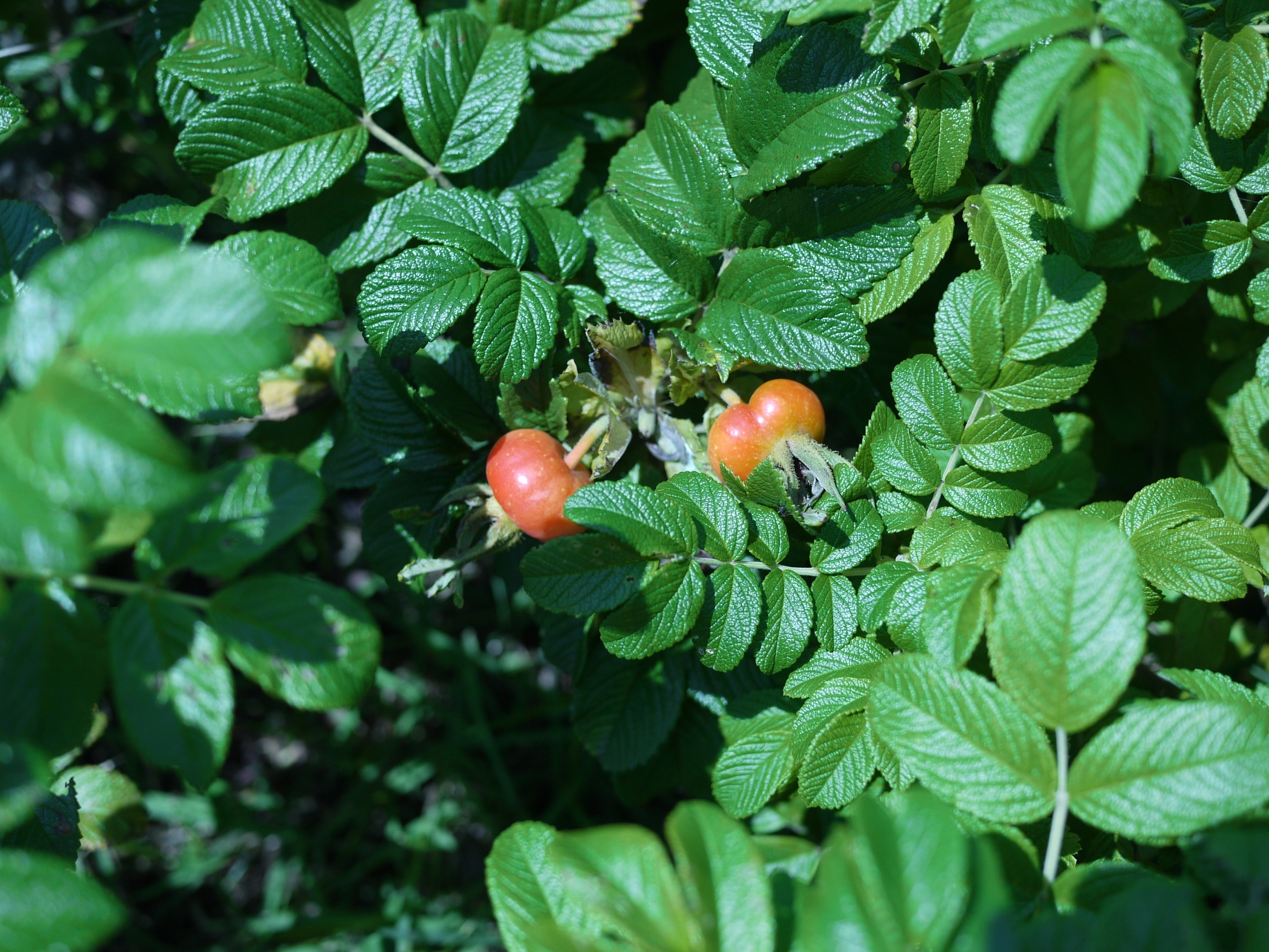 常夜燈の周りにはハマナスが咲いています。