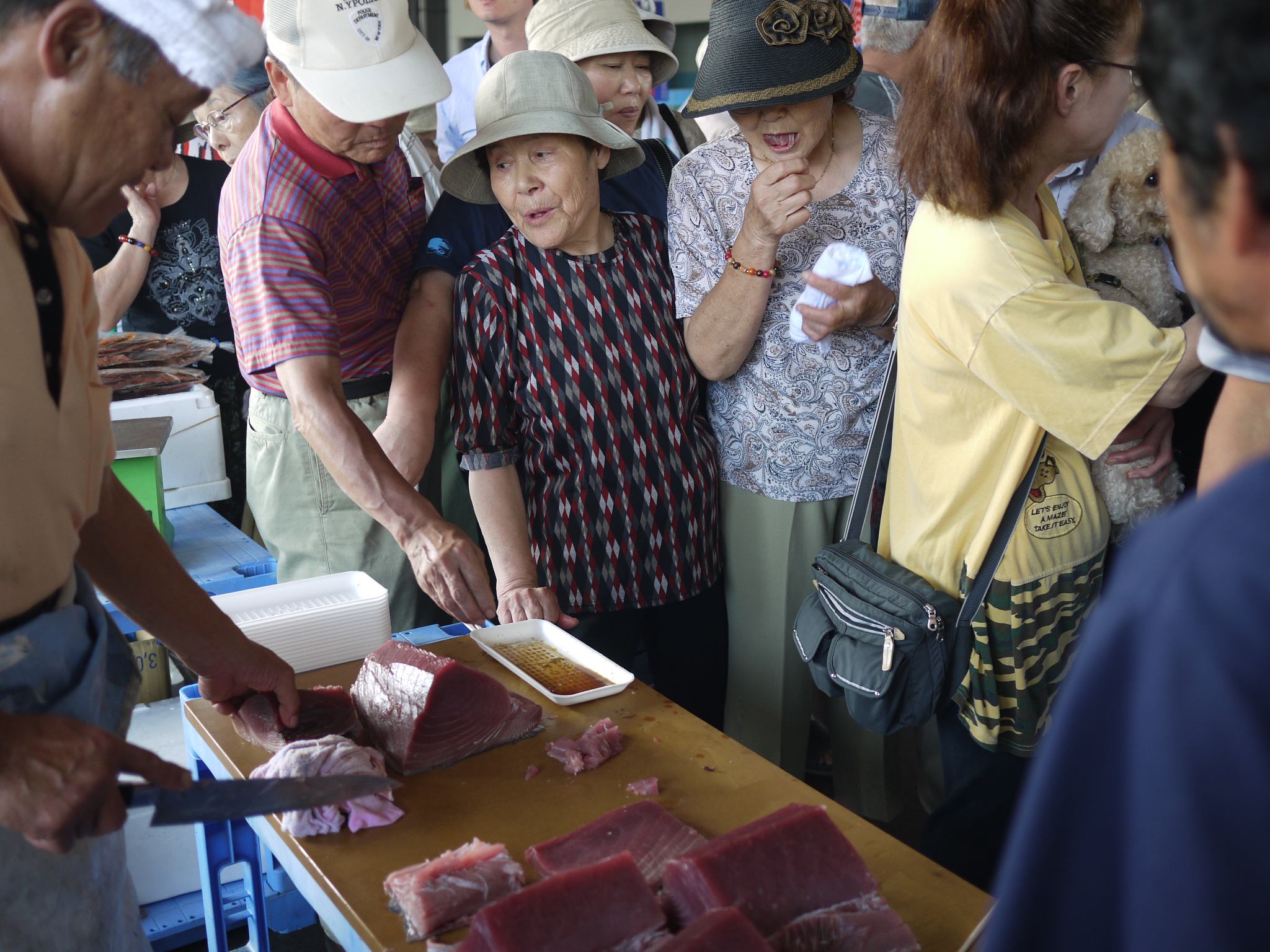 荷捌き場ではまぐろの解体をしていて試食をしていました。