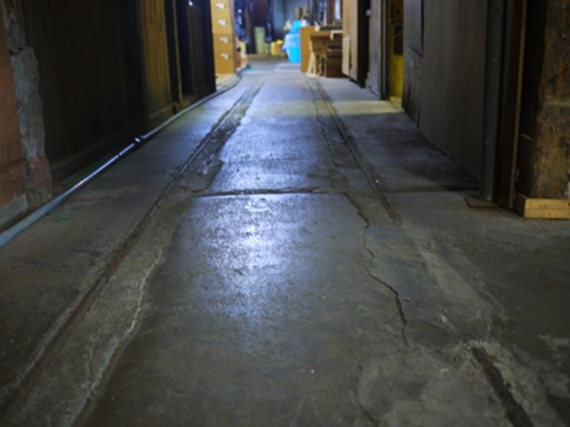 その昔、工場内で作業の際使っていた、トロッコの面影が残っていました。