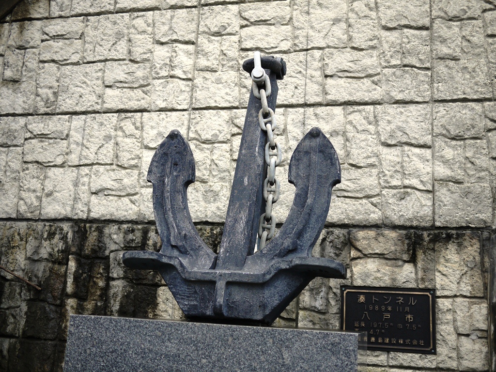 八戸市の湊トンネルの出入り口にあるモニュメント。