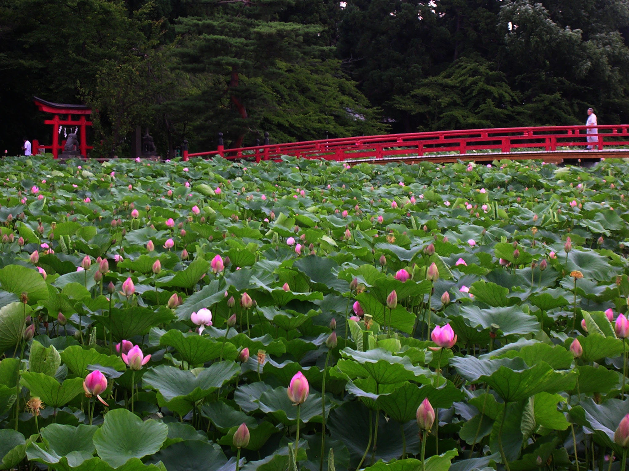 猿賀神社と弘前城の蓮は縁があるんですね。