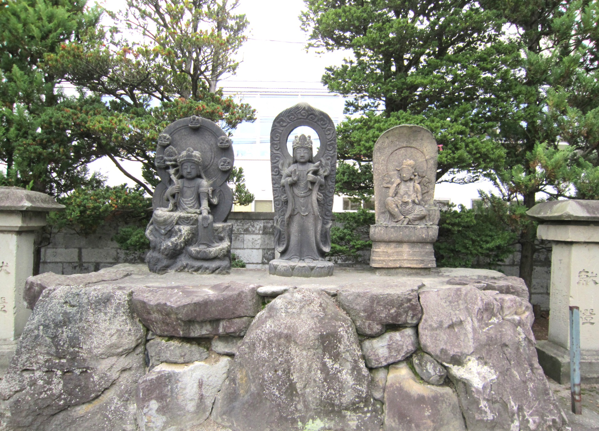 上の写真は、正覚寺観世音石標です。割れてしまった部分を修復している跡が生々しいですね。