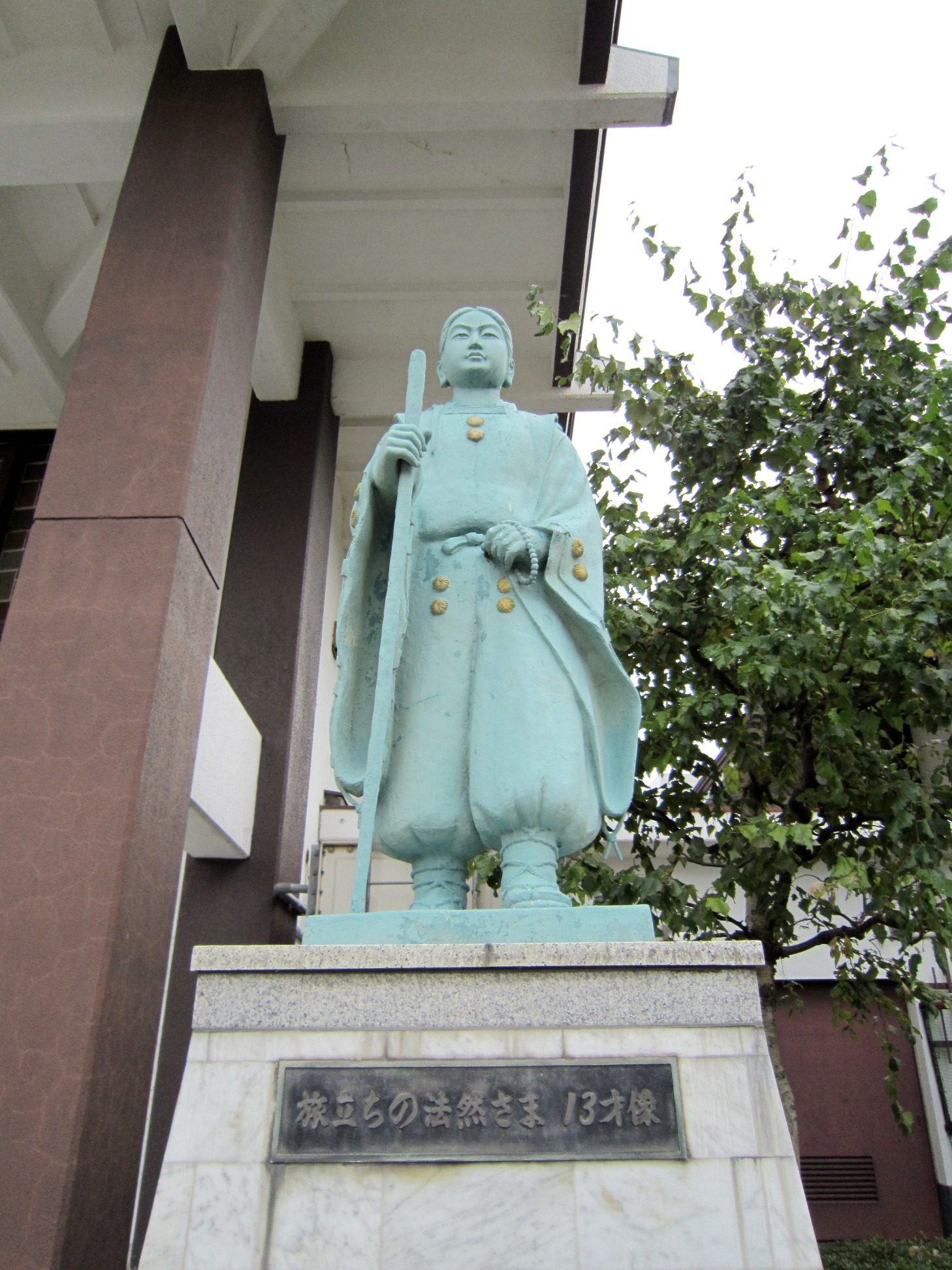 左:写経塔 右:「旅立ちの法然様 13才の像」って書かれてました。