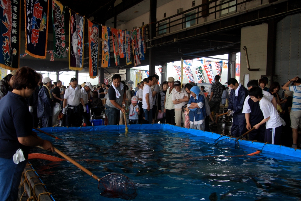 ムチュリー 最後に、イベントのお知らせです。今月(2011 年 6 月)26 日、大畑海峡サーモン祭りが開催されます。海峡サーモンは、ニジマスの幼魚を津軽海峡に設置されたいけすに放流するのよ!