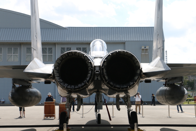 三沢基地の航空祭よりも近くで航空機をじっくり観ることができます。(F-15戦闘機のエンジンノズルにズームイン)